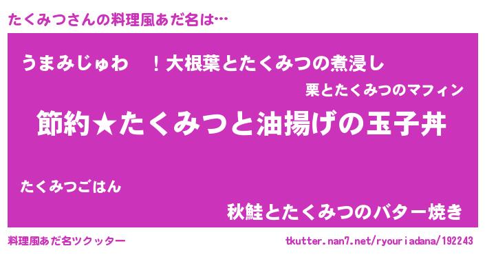 | 胡散臭い通販商品みたいなあだ名 | 『モテモテ間違いなし水晶球…その名も「たくみつ」』 |