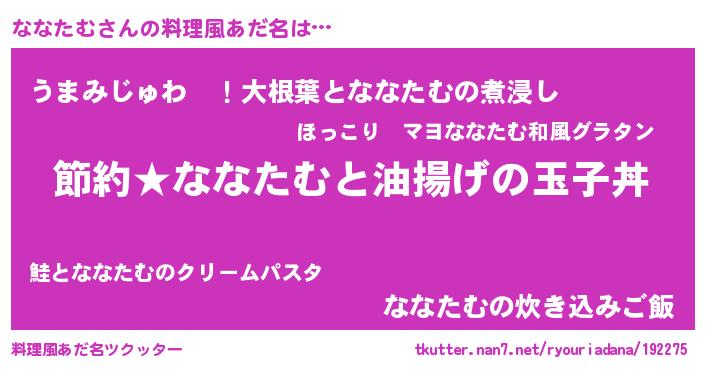 | 胡散臭い通販商品みたいなあだ名 | 『モテモテ間違いなし水晶球…その名も「ななたむ」』 |