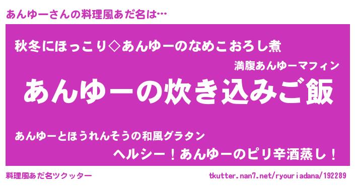 | ヘコむあだ名 | 『あんゆー(笑)』『あんっふぃ~』 |