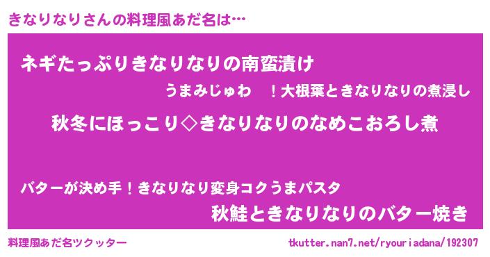 | 男性向けラノベタイトル風あだ名 | 『きなりなりに滅ぼされるだけの簡単なお仕事です』 |