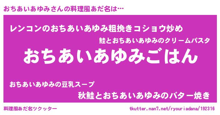 | ヘコむあだ名 | 『おちあいあゆみ(爆)』『おちお』 |
