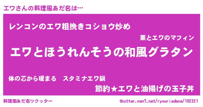 | 意味不明あだ名 | 『ヨモギ科エワ属』『自称エワ』 |