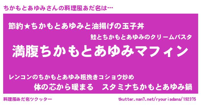 | 胡散臭い通販商品みたいなあだ名 | 『絶対に幸福をもたらす健康食品…その名も「ちかもとあゆみ」』 |