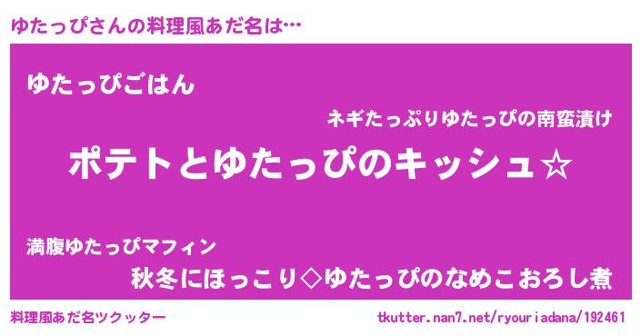 | 女子向けラノベタイトル風あだ名 | 『ゆたっぴの卵を拾いまして』 |