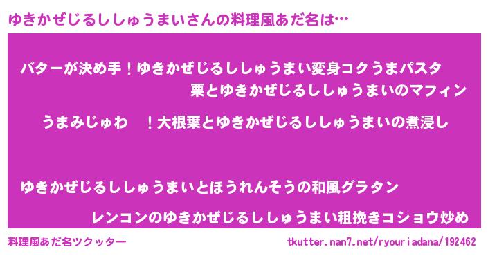 | ファンタジー風あだ名 | 『エターナルユキカゼジルシシュウマイー』 |