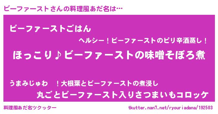 | 男性向けラノベタイトル風あだ名 | 『ビーファーストの憂鬱』 |