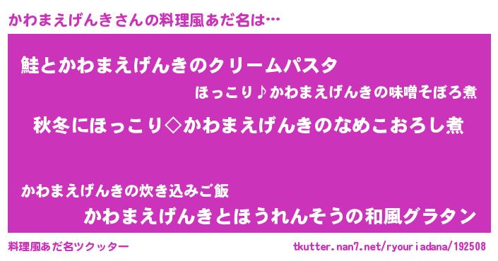 | 男性向けラノベタイトル風あだ名 | 『かわまえげんきに滅ぼされるだけの簡単なお仕事です』 |