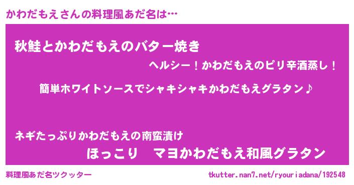 | ヘコむあだ名 | 『かわぷりん』『かわだもえ(笑)』 |