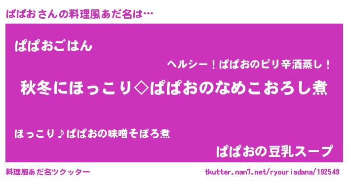 | ヘコむあだ名 | 『ぱぱっちょ』『ぱぱもー』『豆乳』 |