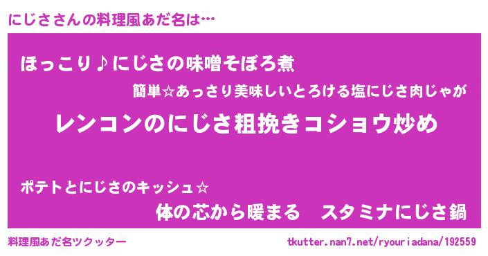 | 男性向けラノベタイトル風あだ名 | 『魔法科高校のにじさ』『にじさの憂鬱』 |