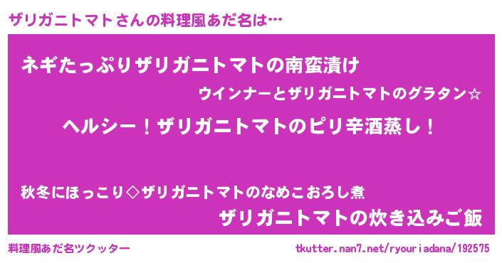| 男性向けラノベタイトル風あだ名 | 『Re:ザリガニトマトから始める異世界生活』 |