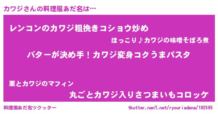 | 女子向けラノベタイトル風あだ名 | 『カワジ恋絵巻』『カワジアンティーク』 |