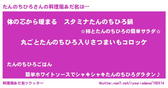 | 意味不明あだ名 | 『住所不定無職たんのちひろ(68歳)』 |