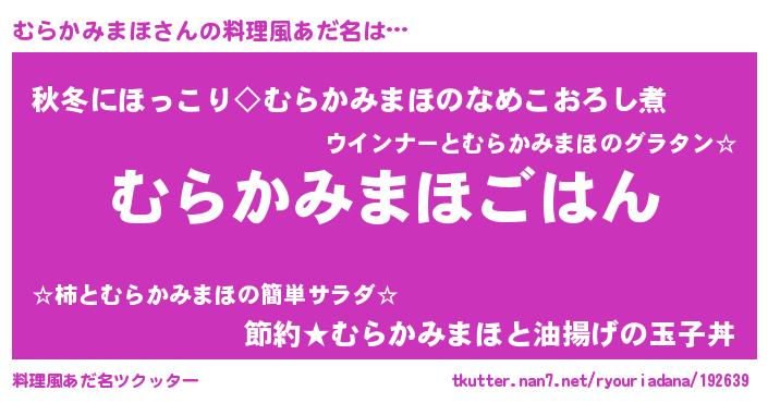| 男性向けラノベタイトル風あだ名 | 『転生したらむらかみまほだった件』 |