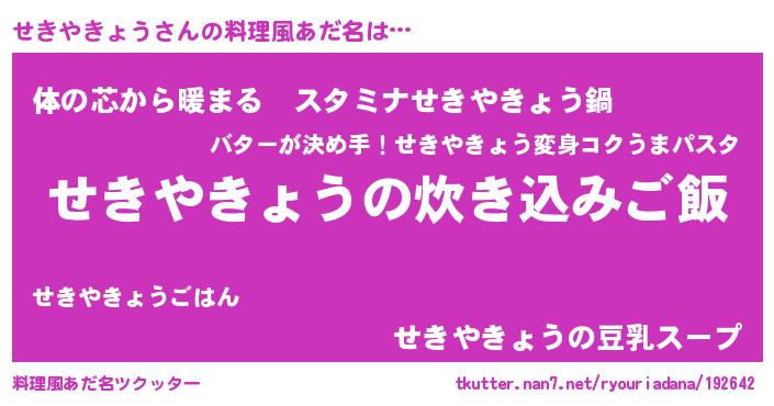 | ヒーロー風カッコイイあだ名 | 『ウルトラせきやきょうマン』 |
