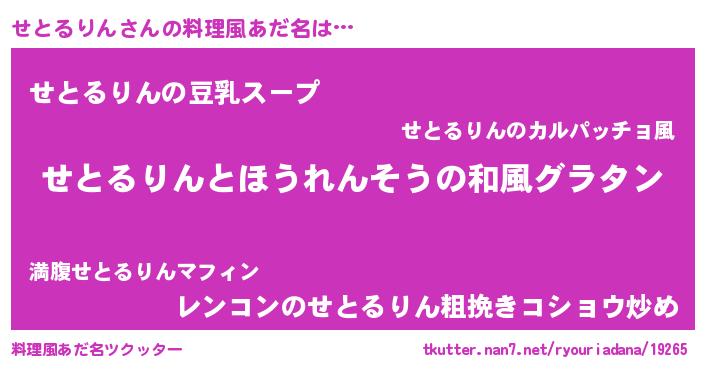 | 男性向けラノベタイトル風あだ名 | 『転生したらせとるりんだった件』 |