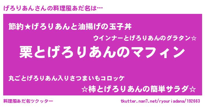 | 男性向けラノベタイトル風あだ名 | 『はたらくげろりあんさま!』 |
