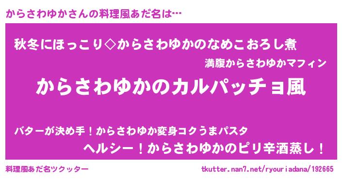 | 恥ずかしいあだ名 | 『カラサワユカデラックス』『からちん』 |