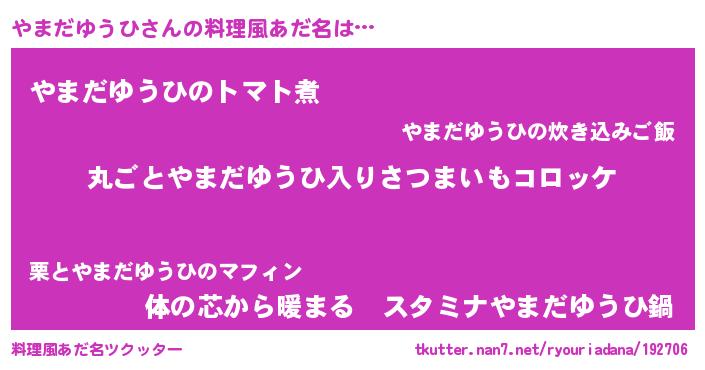 | 意味不明あだ名 | 『住所不定無職やまだゆうひ(68歳)』 |