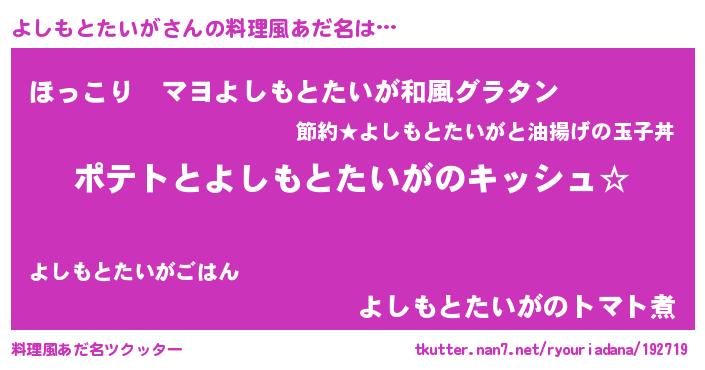 | ポケモン風あだ名 | 『ヒヨシモトタイガ』『ヨーシイ』 |