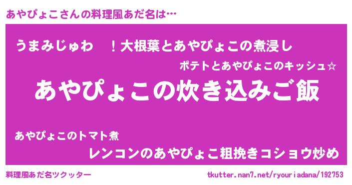 | 意味不明あだ名 | 『あやぴょこフォーエバー』 |