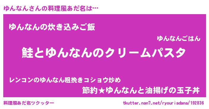 | ヘコむあだ名 | 『ゆんっふぃ~』『なまこ酢』 |