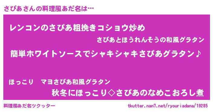 | 意味不明あだ名 | 『とにかく怪しいさぴあ』『自称さぴあ』 |