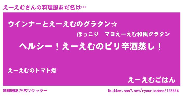 | 意味不明あだ名 | 『自称えーえむ』『えーえむフォーエバー』 |