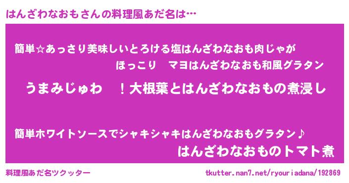 | 意味不明あだ名 | 『はんざわなおもフォーエバー』 |