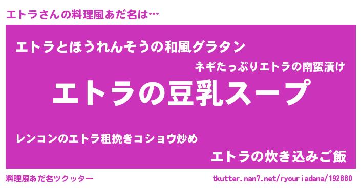 | 意味不明あだ名 | 『とにかく怪しいエトラ』『自称エトラ』 |