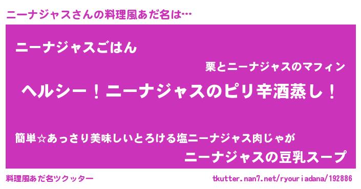| 胡散臭い通販商品みたいなあだ名 | 『芸能人もオススメする高麗人参…その名も「ニーナジャス」』 |