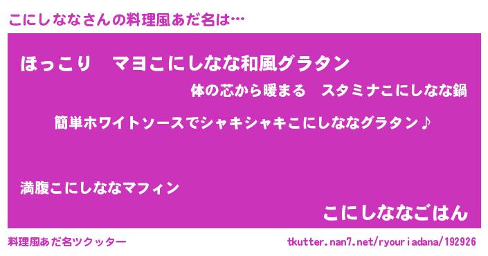 | ヘコむあだ名 | 『こにっ子』『豆乳』『こにふぇ~』 |