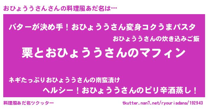 | ヘコむあだ名 | 『おひにゅー』『おひょううさん(震え声)』 |