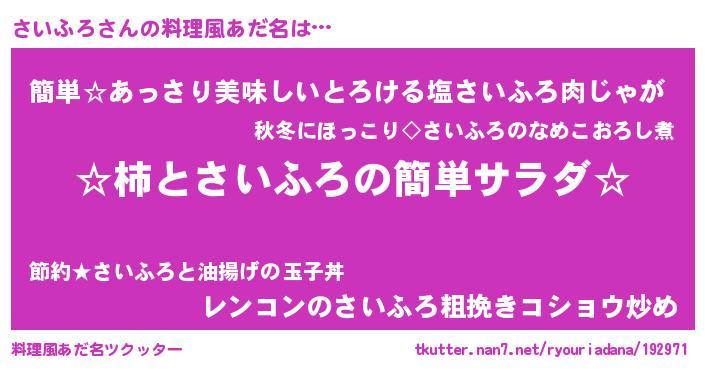 | 意味不明あだ名 | 『永久保存さいふろ』『自称さいふろ』 |