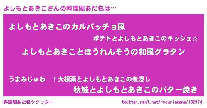| ヘコむあだ名 | 『よしもとあきこ(震え声)』『よしぷりん』 |