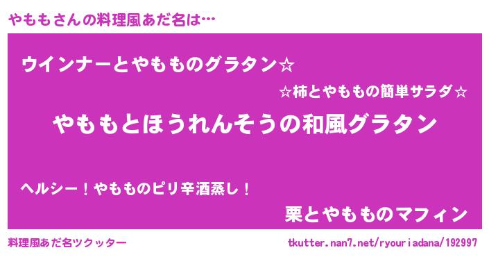 | 女子向けラノベタイトル風あだ名 | 『やももの玉の輿計画!』『闇のやもも』 |