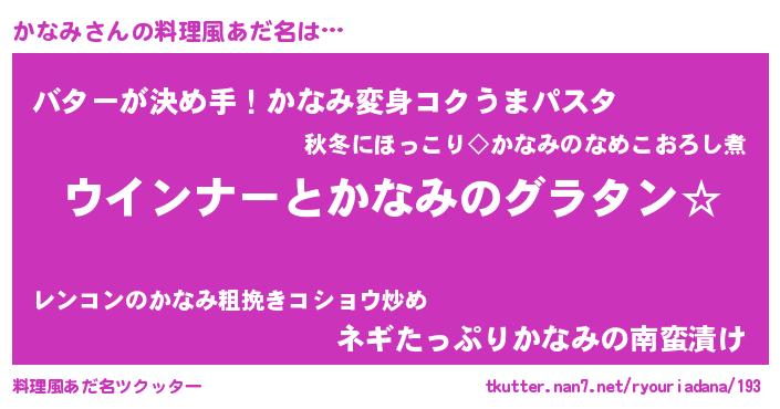 | 自動車の名前っぽいあだ名 | 『カスラー』『カンR』『カナティマ』 |