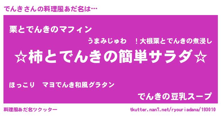 | 市区町村名 | 『でん田谷区』『名古でん市』 |
