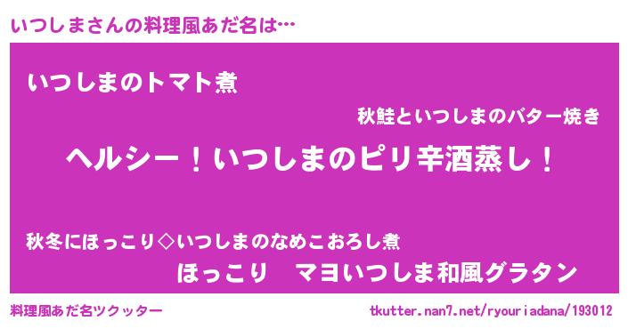 | 意味不明あだ名 | 『自称いつしま』『永久保存いつしま』 |