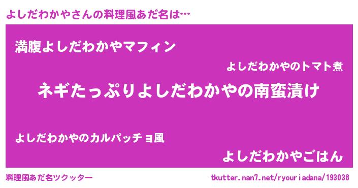 | 可愛いあだ名 | 『よんよん』『よしだわかやママ』 |