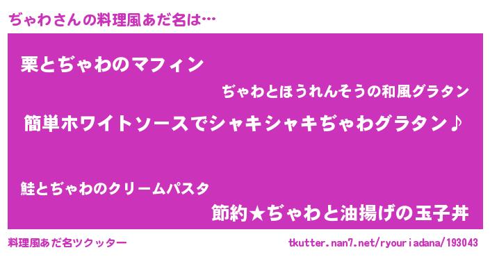 | 女子向けラノベタイトル風あだ名 | 『ぢゃわ様がみてる』『死神ぢゃわの再婚』 |