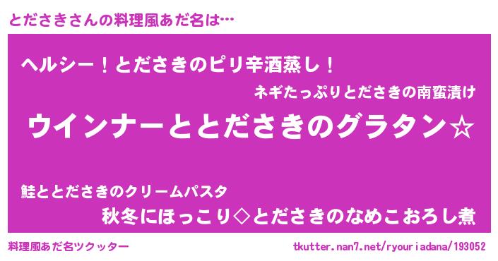 | ヘコむあだ名 | 『豆乳』『とだにゅー』『とだを』 |