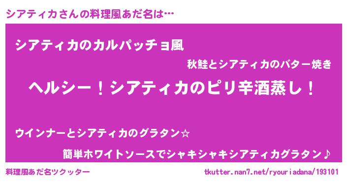 | 男性向けラノベタイトル風あだ名 | 『Re:シアティカから始める異世界生活』 |