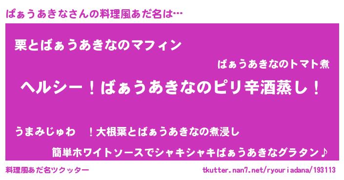 | 男性向けラノベタイトル風あだ名 | 『Re:ばぁうあきなから始める異世界生活』 |