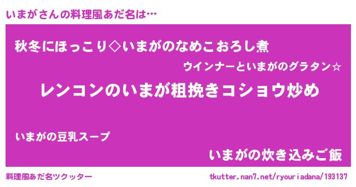 | ポケモン風あだ名 | 『イマセウス』『イマゴンZ』 |