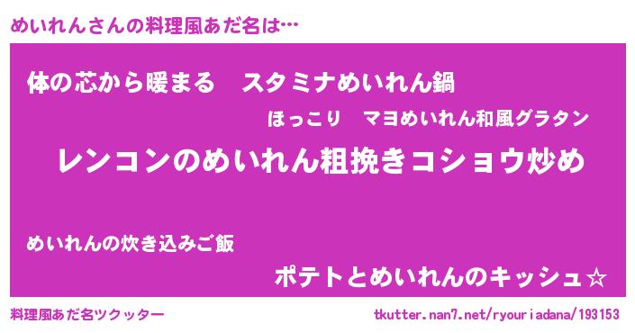 | 恥ずかしいあだ名 | 『メイレンデラックス』『めいっちょ』 |