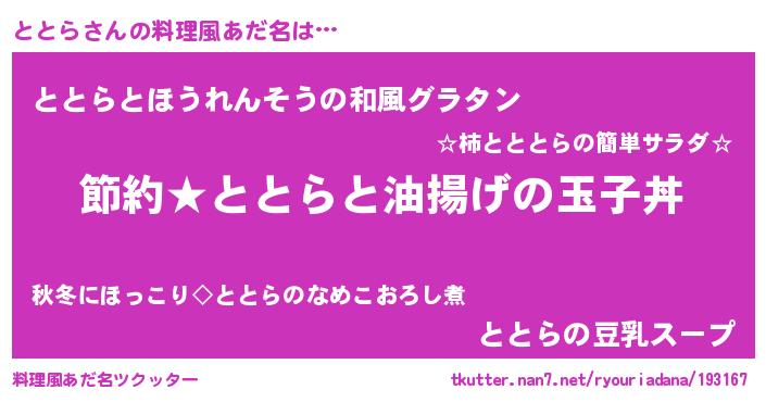 | ヘコむあだ名 | 『ととにゅー』『ととっ子』 |