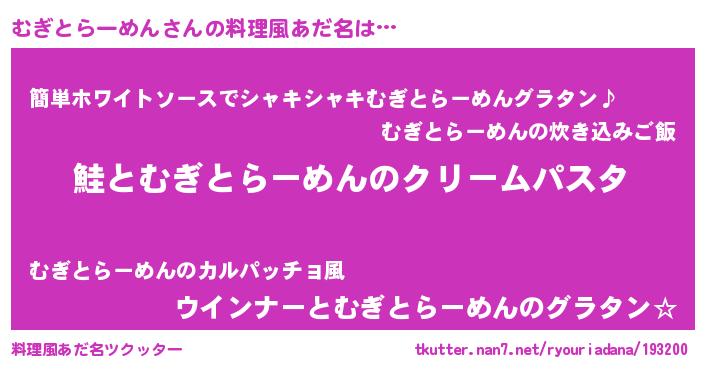 | 欧米人風あだ名 | 『ダニエルむぎとらーめん』 |
