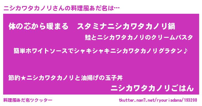 | ポケモン風あだ名 | 『ヒニシカワタカノリ』『ニシカダネ』 |