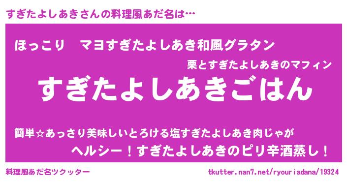 | ヘコむあだ名 | 『すぎたよしあき(震え声)』『すぎにゅー』 |